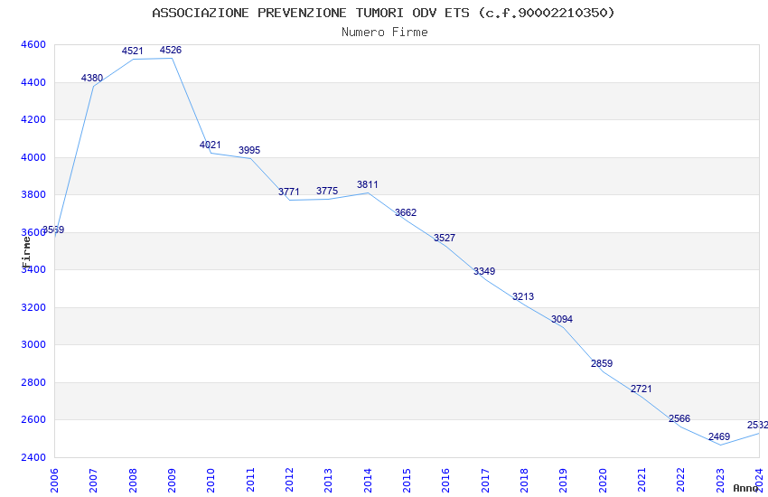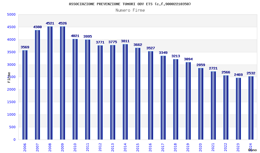 | Anno | Firme | Importi | Media | Naz. | Reg. | Prov. | Comu. |