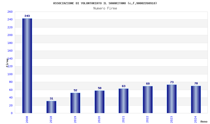 | Anno | Firme | Importi | Media | Naz. | Reg. | Prov. | Comu. |