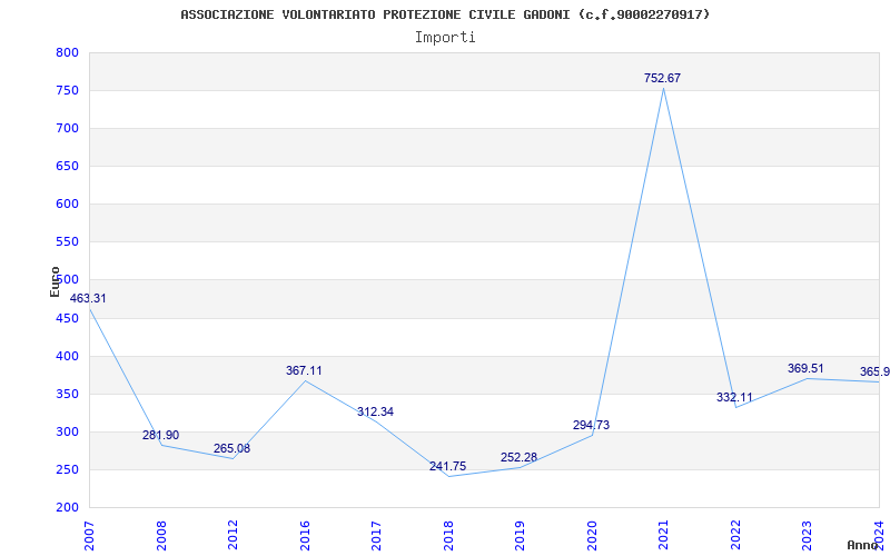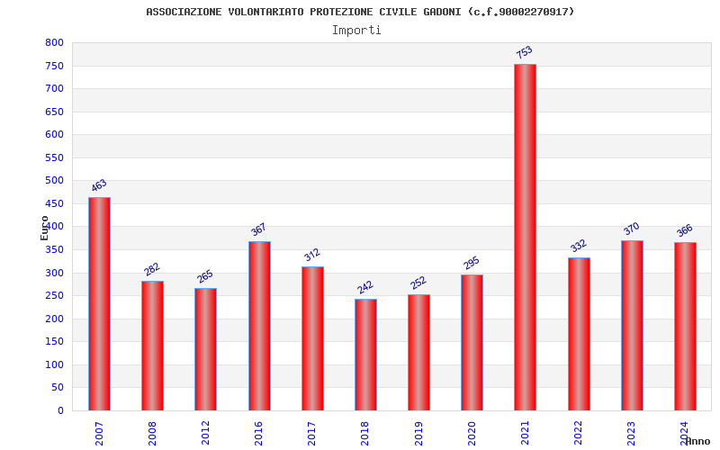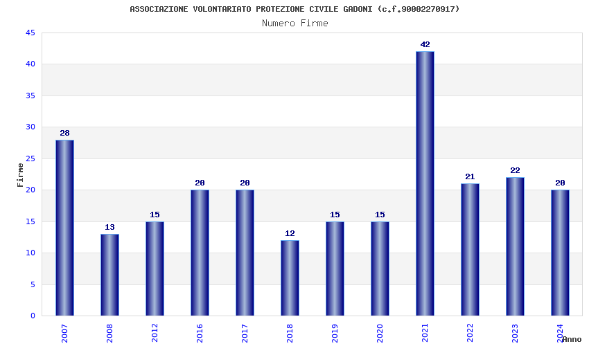 | Anno | Firme | Importi | Media | Naz. | Reg. | Prov. | Comu. |