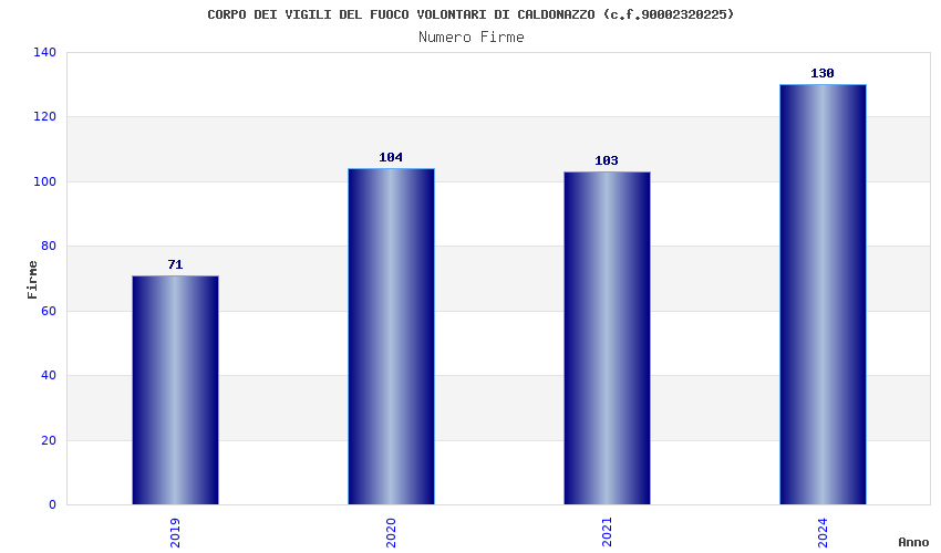 | Anno | Firme | Importi | Media | Naz. | Reg. | Prov. | Comu. |