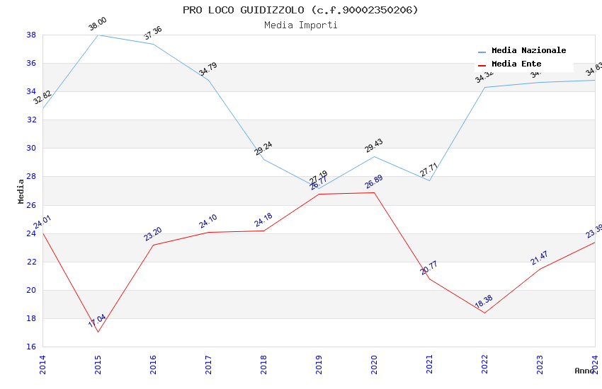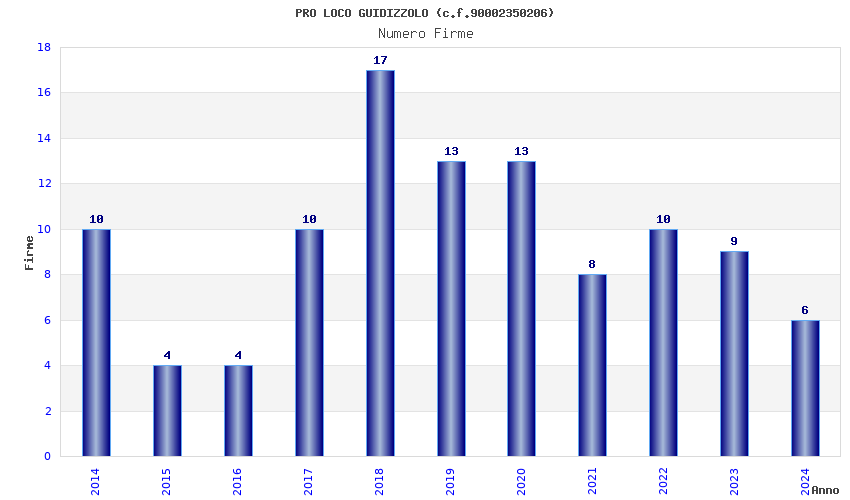 | Anno | Firme | Importi | Media | Naz. | Reg. | Prov. | Comu. |