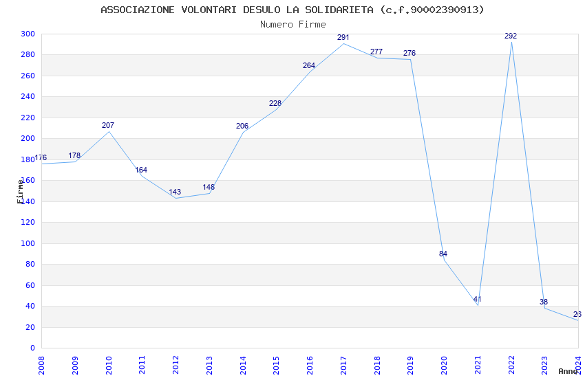 | 2017 | 291 | 5.800,13 | 19,93 | 9.533 | 139 | 18 | 1 |