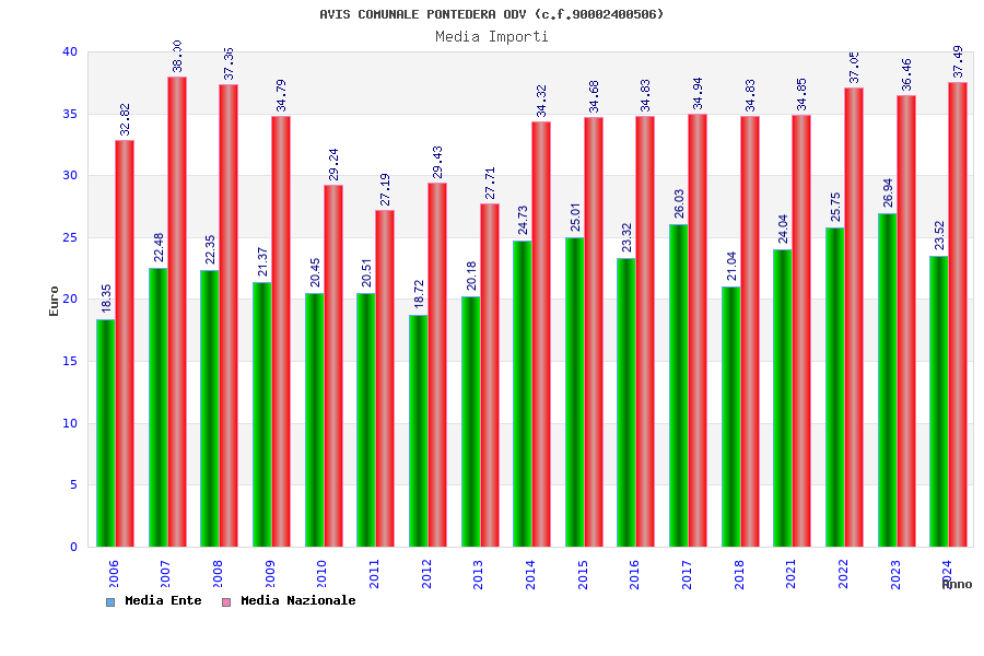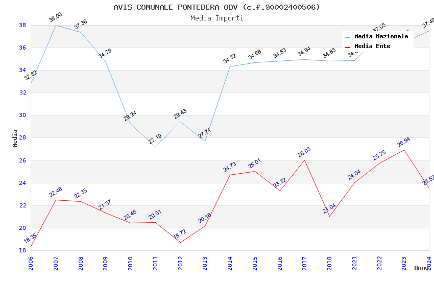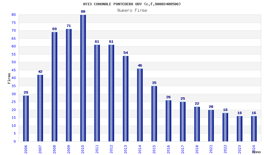 | Anno | Firme | Importi | Media | Naz. | Reg. | Prov. | Comu. |