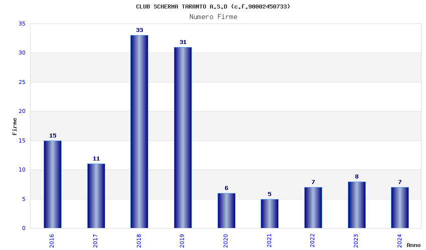 | Anno | Firme | Importi | Media | Naz. | Reg. | Prov. | Comu. |