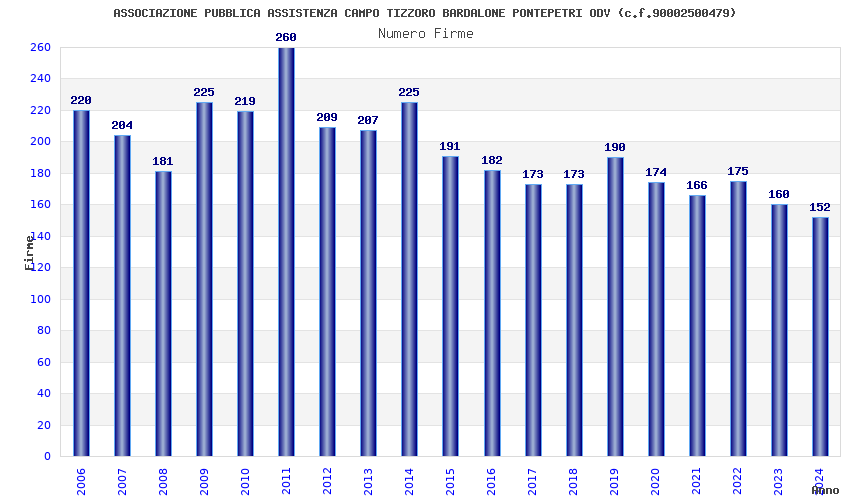 | Anno | Firme | Importi | Media | Naz. | Reg. | Prov. | Comu. |