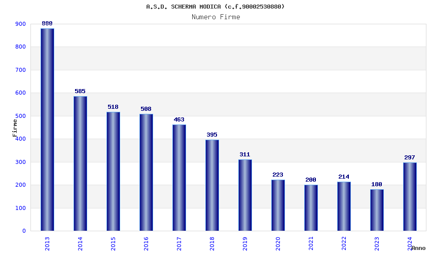 | Anno | Firme | Importi | Media | Naz. | Reg. | Prov. | Comu. |