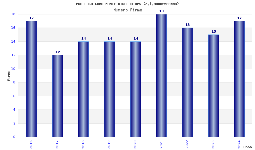 | Anno | Firme | Importi | Media | Naz. | Reg. | Prov. | Comu. |