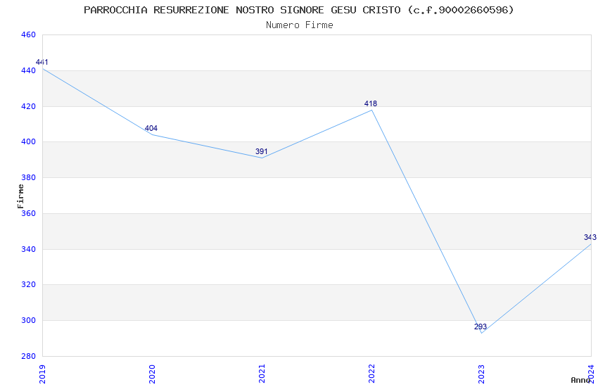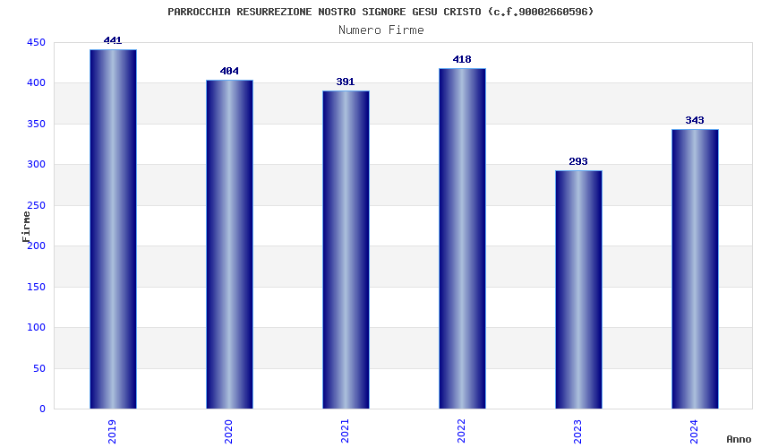 | Anno | Firme | Importi | Media | Naz. | Reg. | Prov. | Comu. |
