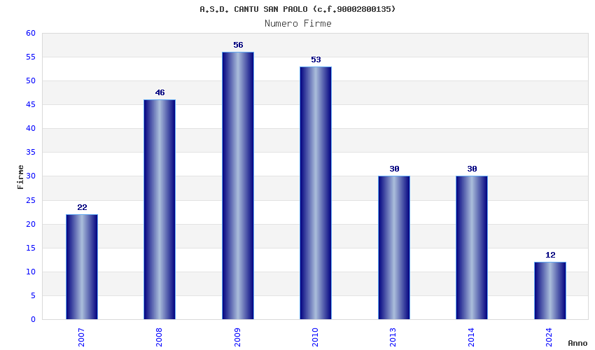 | Anno | Firme | Importi | Media | Naz. | Reg. | Prov. | Comu. |