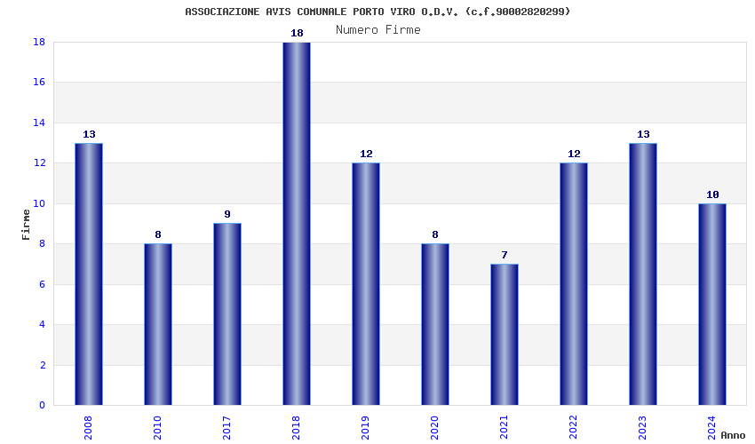 | Anno | Firme | Importi | Media | Naz. | Reg. | Prov. | Comu. |