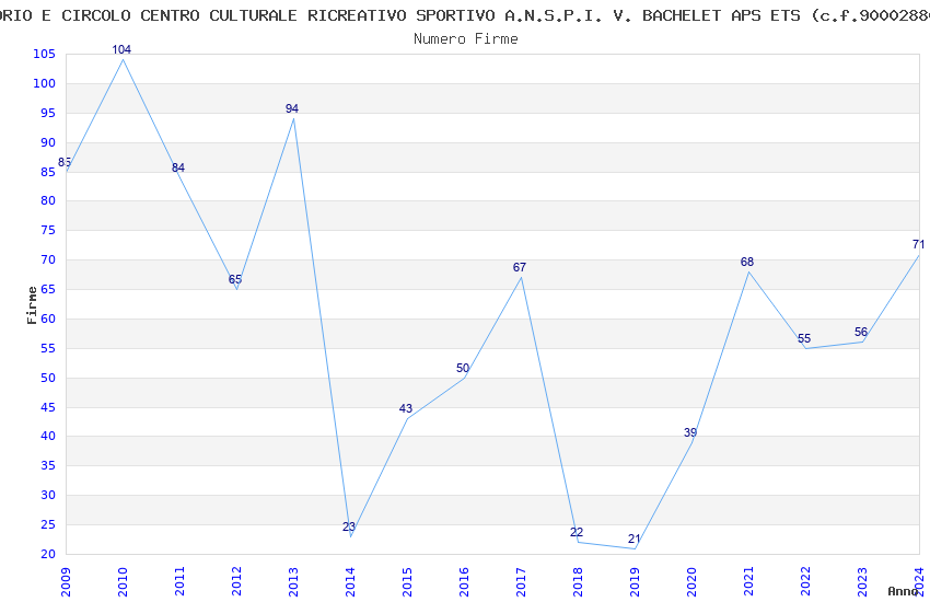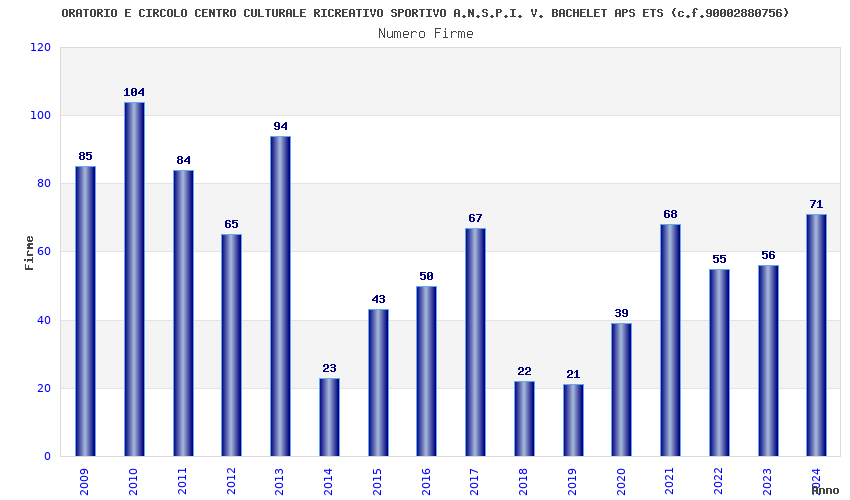 | 2024 | 71 | 1.055,80 | 14,87 | 36.533 | 1.921 | 375 | 3 |