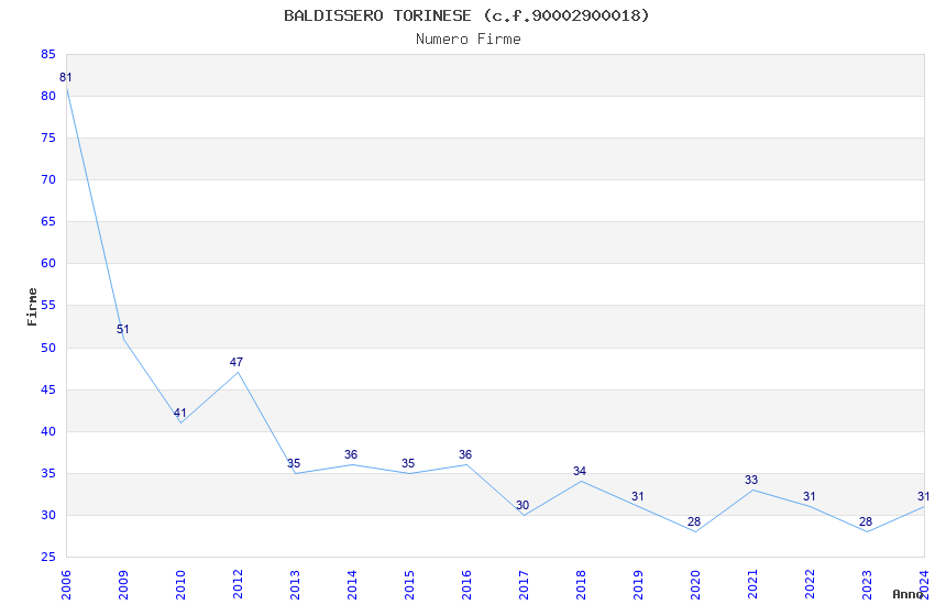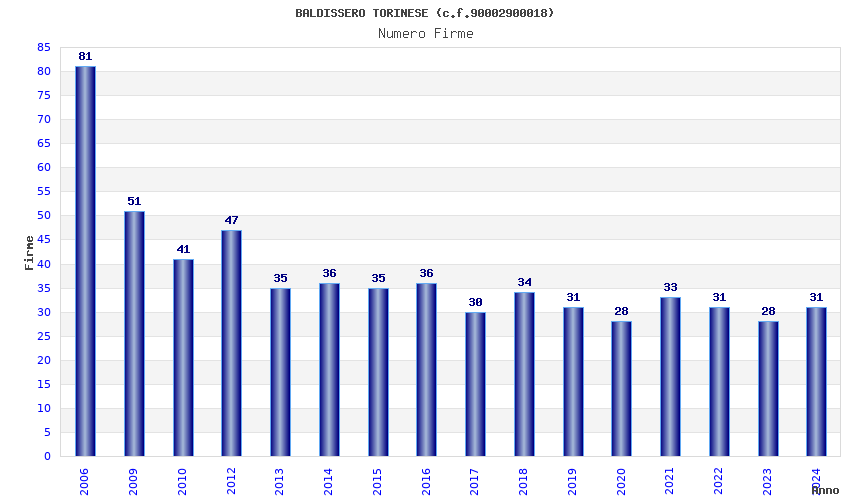 | Anno | Firme | Importi | Media | Naz. | Reg. | Prov. | Comu. |
