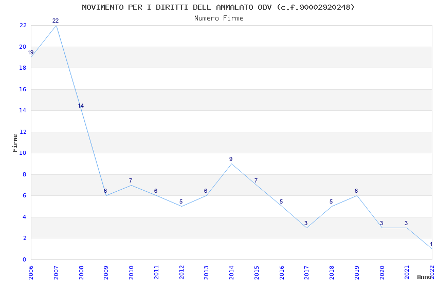 | Anno | Firme | Importi | Media | Naz. | Reg. | Prov. | Comu. |
