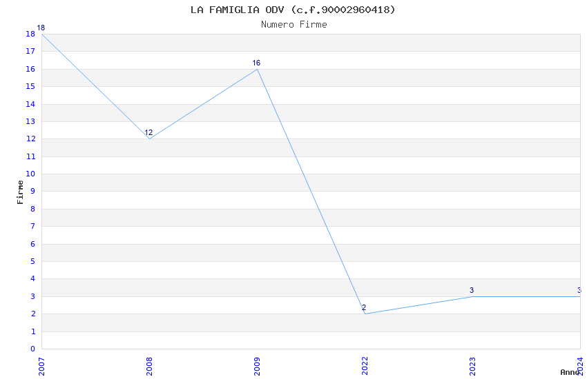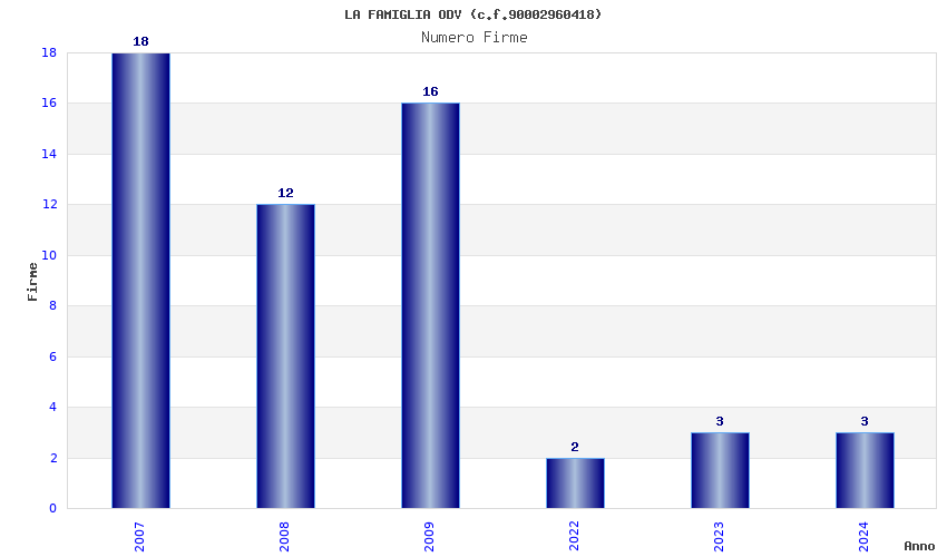 | Anno | Firme | Importi | Media | Naz. | Reg. | Prov. | Comu. |