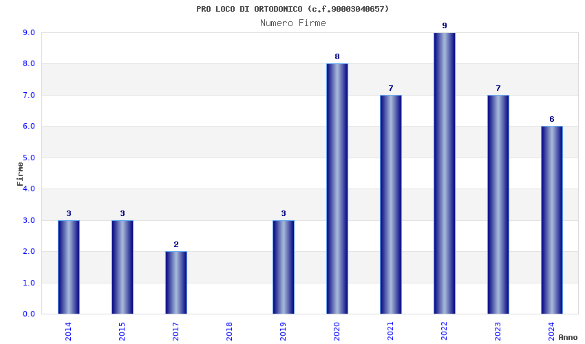 | Anno | Firme | Importi | Media | Naz. | Reg. | Prov. | Comu. |
