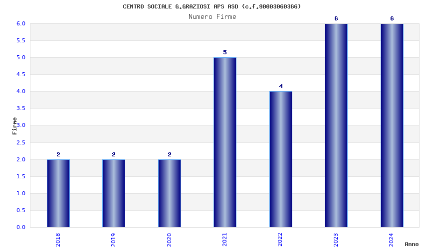 | Anno | Firme | Importi | Media | Naz. | Reg. | Prov. | Comu. |
