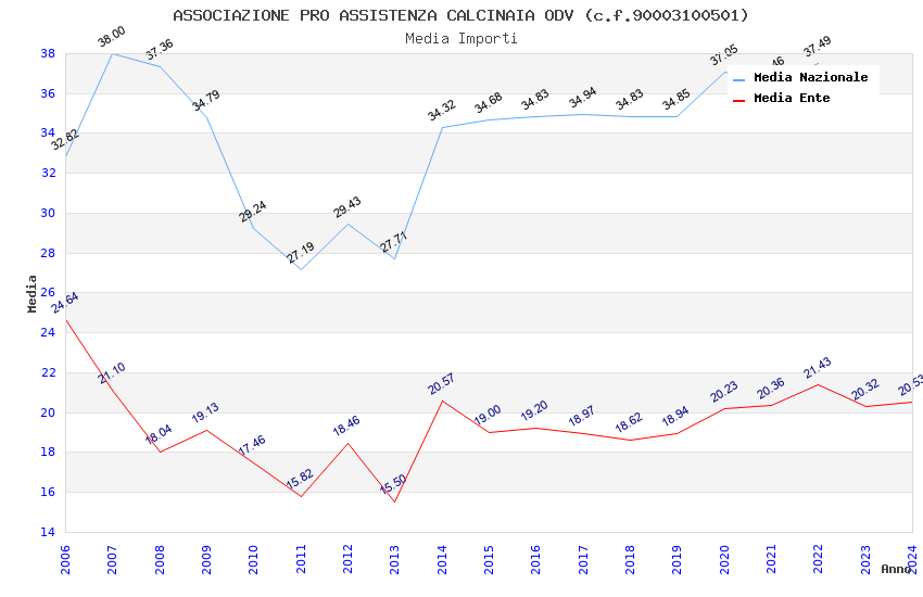 | Anno | Firme | Importi | Media | Naz. | Reg. | Prov. | Comu. |