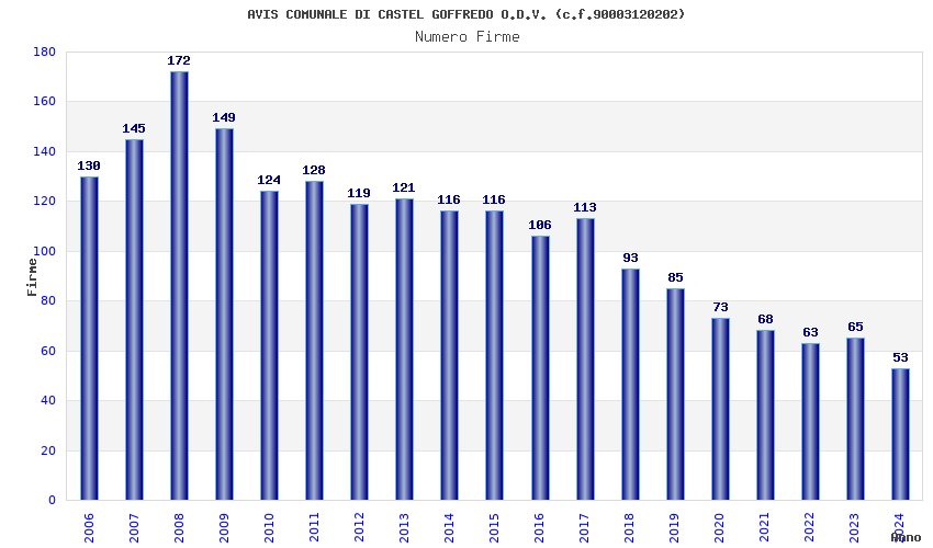 | Anno | Firme | Importi | Media | Naz. | Reg. | Prov. | Comu. |