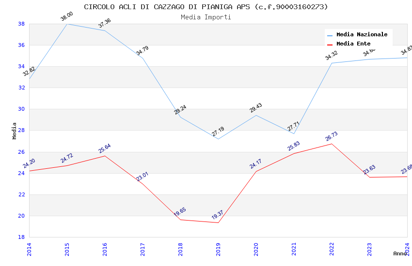 | Anno | Firme | Importi | Media | Naz. | Reg. | Prov. | Comu. |