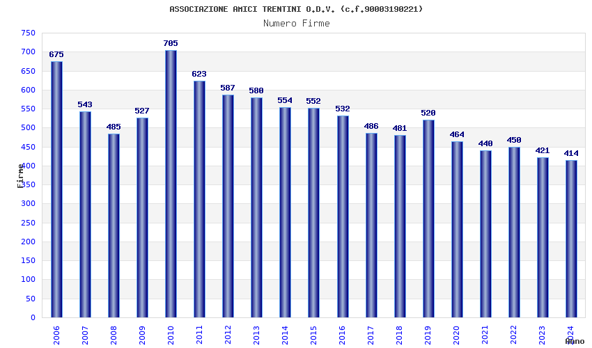 | Anno | Firme | Importi | Media | Naz. | Reg. | Prov. | Comu. |
