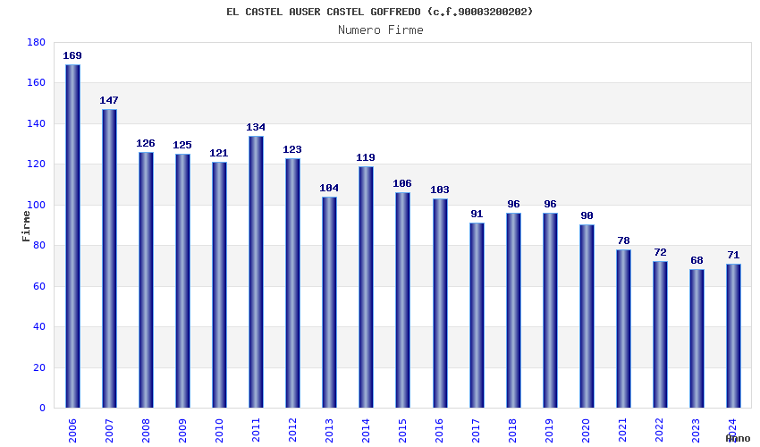 | Anno | Firme | Importi | Media | Naz. | Reg. | Prov. | Comu. |
