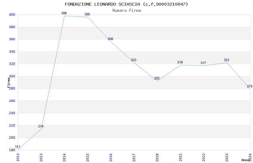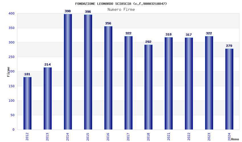 | Anno | Firme | Importi | Media | Naz. | Reg. | Prov. | Comu. |