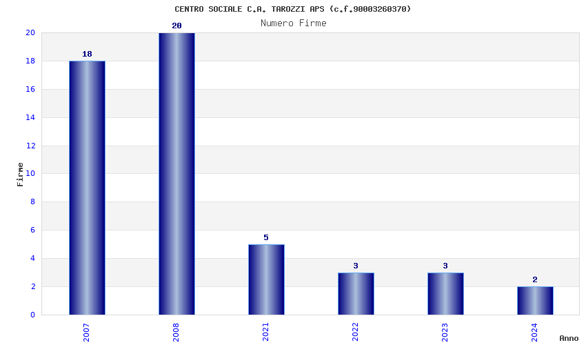 | Anno | Firme | Importi | Media | Naz. | Reg. | Prov. | Comu. |