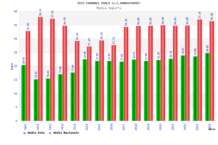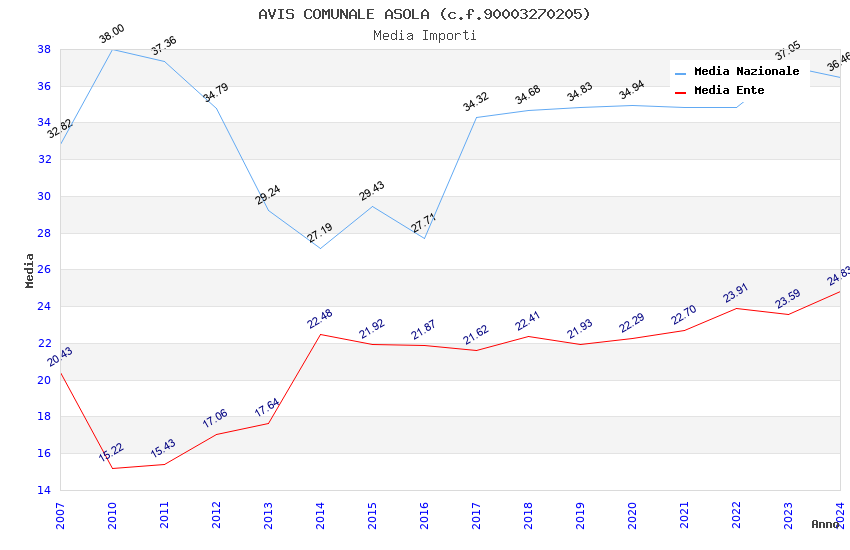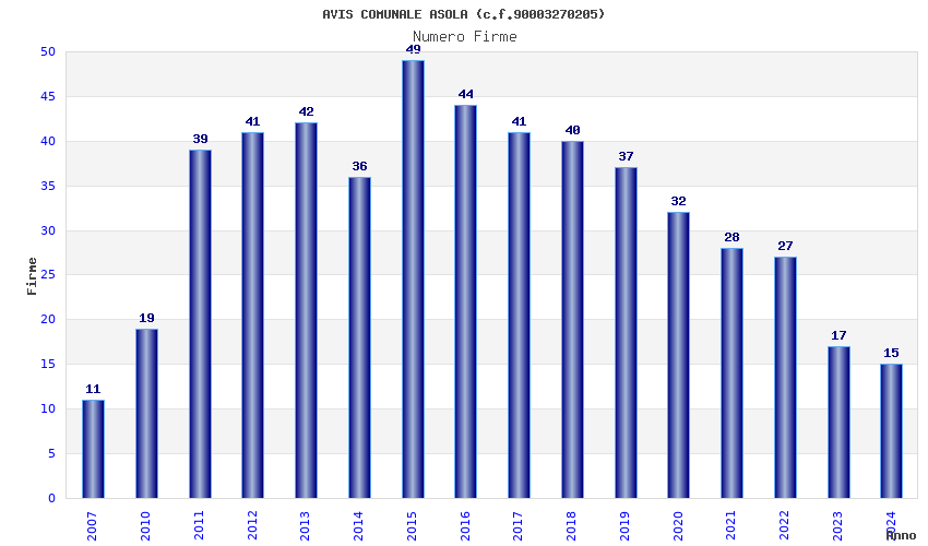 | Anno | Firme | Importi | Media | Naz. | Reg. | Prov. | Comu. |