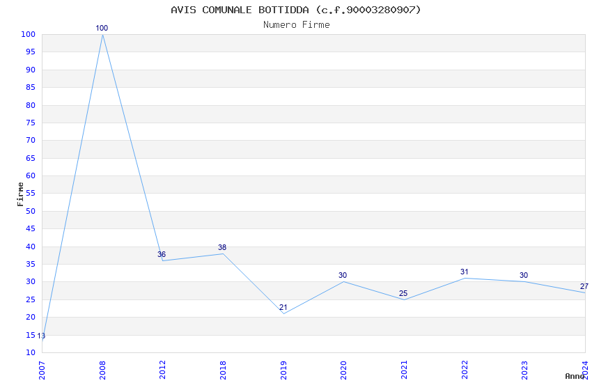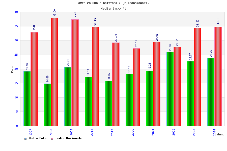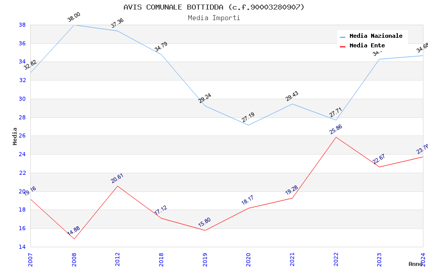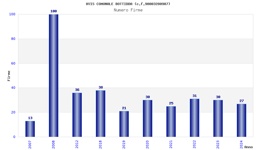 | Anno | Firme | Importi | Media | Naz. | Reg. | Prov. | Comu. |