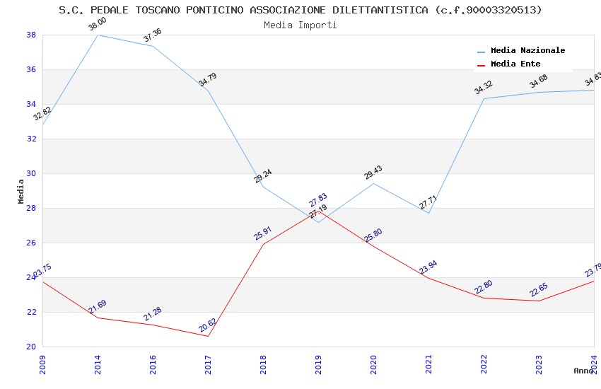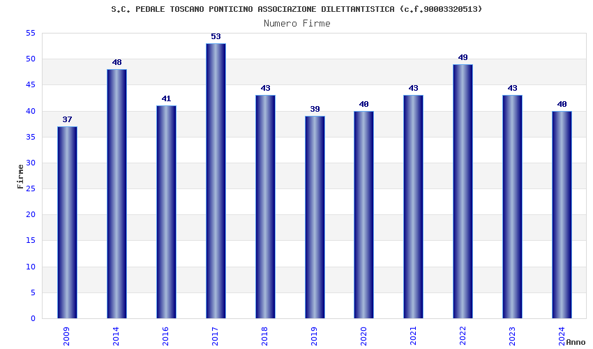 | Anno | Firme | Importi | Media | Naz. | Reg. | Prov. | Comu. |
