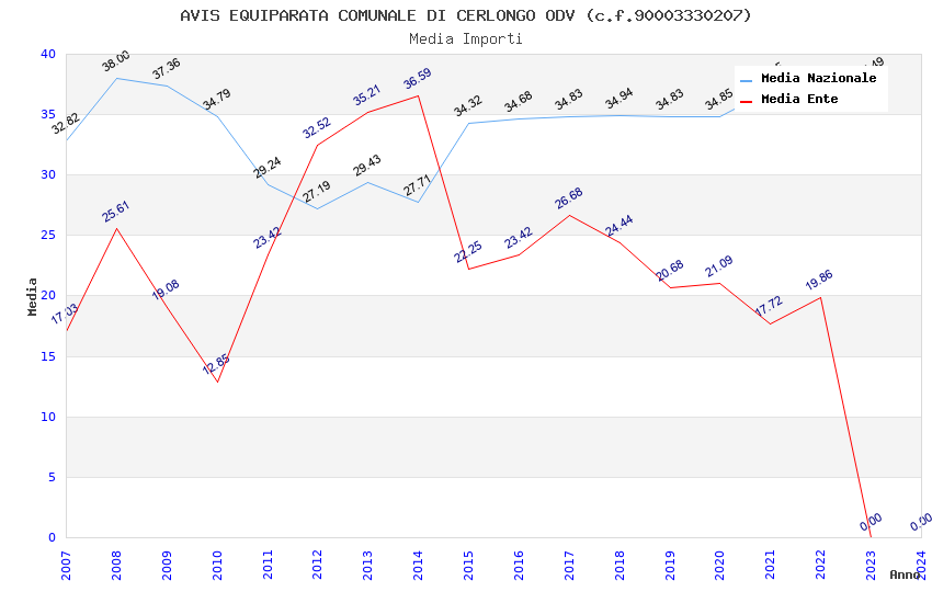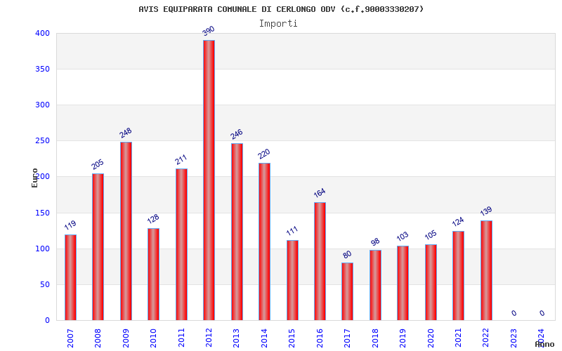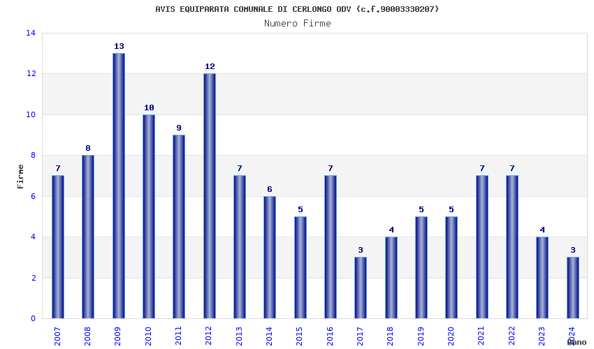 | Anno | Firme | Importi | Media | Naz. | Reg. | Prov. | Comu. |