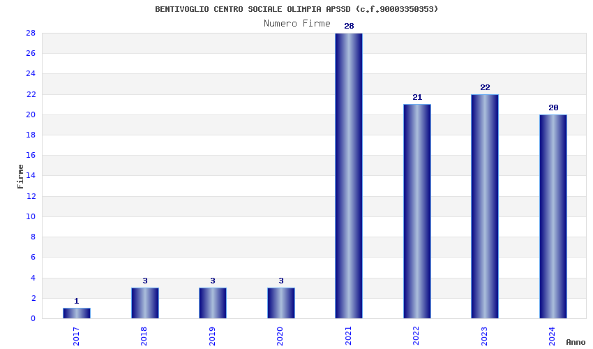 | Anno | Firme | Importi | Media | Naz. | Reg. | Prov. | Comu. |