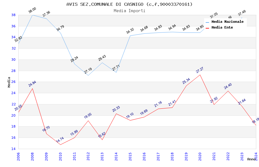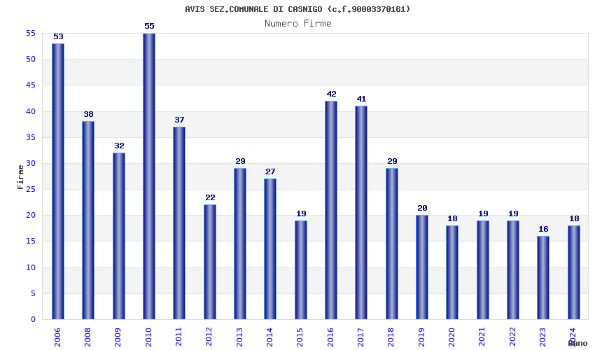 | Anno | Firme | Importi | Media | Naz. | Reg. | Prov. | Comu. |