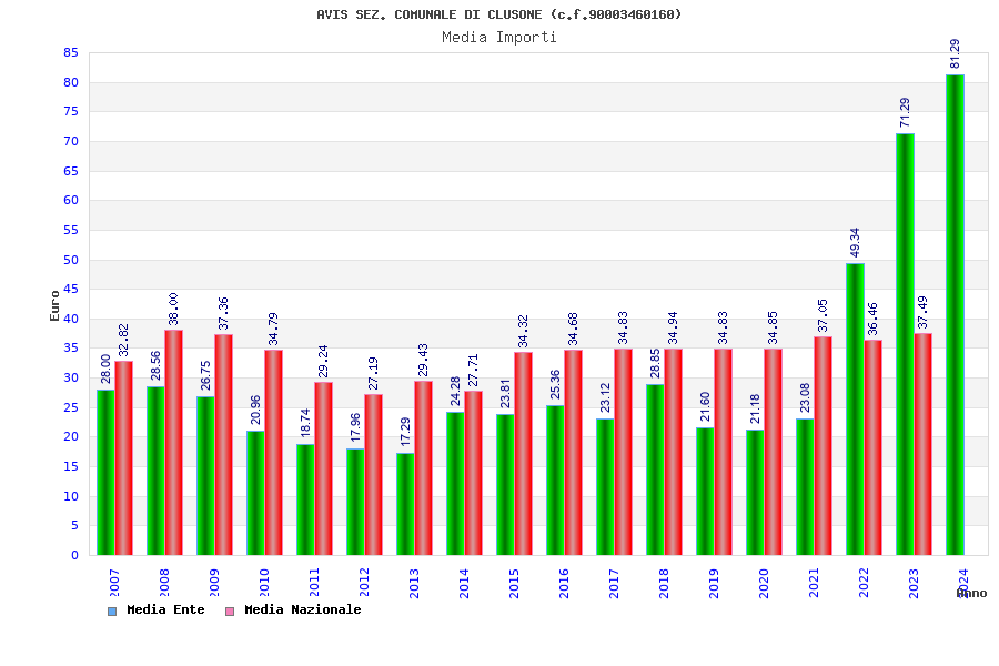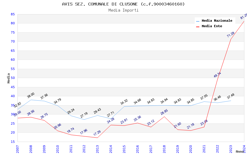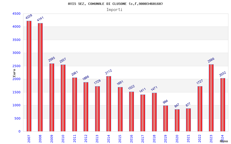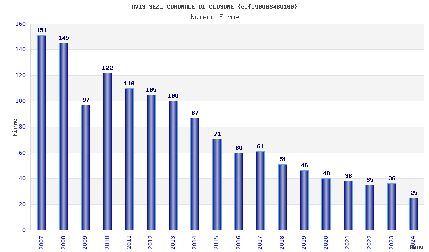 | Anno | Firme | Importi | Media | Naz. | Reg. | Prov. | Comu. |