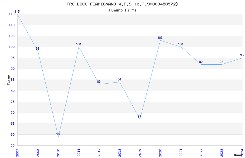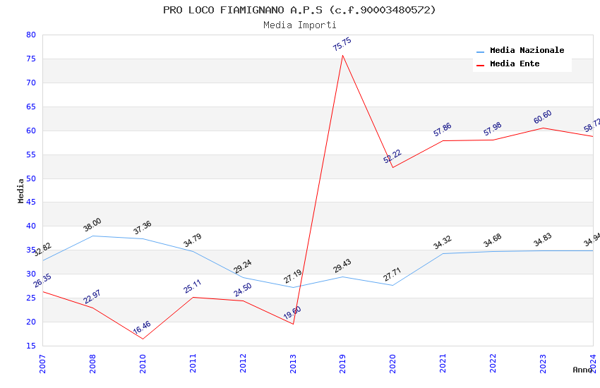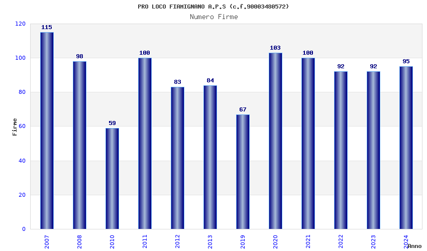 | Anno | Firme | Importi | Media | Naz. | Reg. | Prov. | Comu. |