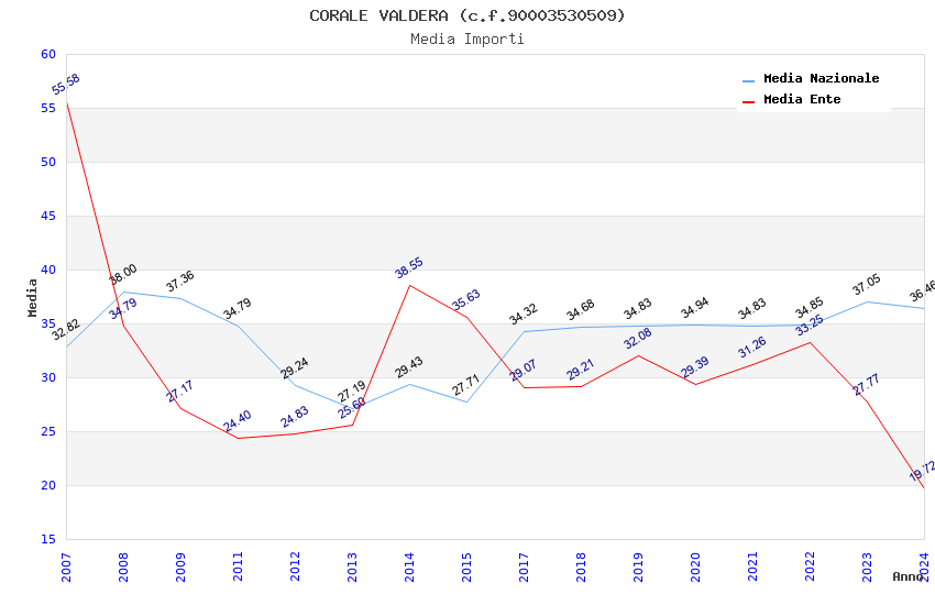 | Anno | Firme | Importi | Media | Naz. | Reg. | Prov. | Comu. |