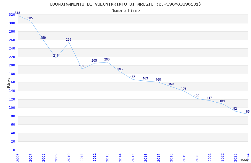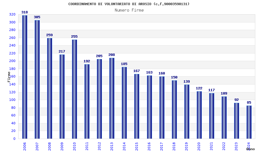 | Anno | Firme | Importi | Media | Naz. | Reg. | Prov. | Comu. |
