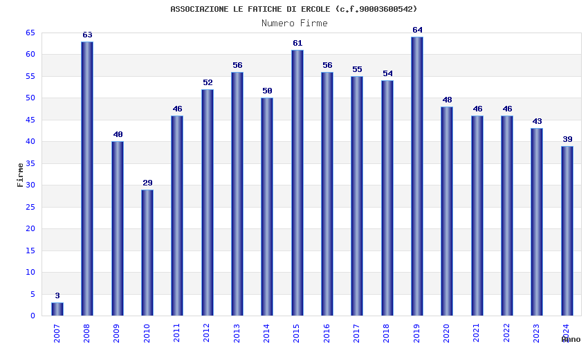 | Anno | Firme | Importi | Media | Naz. | Reg. | Prov. | Comu. |