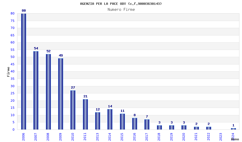 | Anno | Firme | Importi | Media | Naz. | Reg. | Prov. | Comu. |