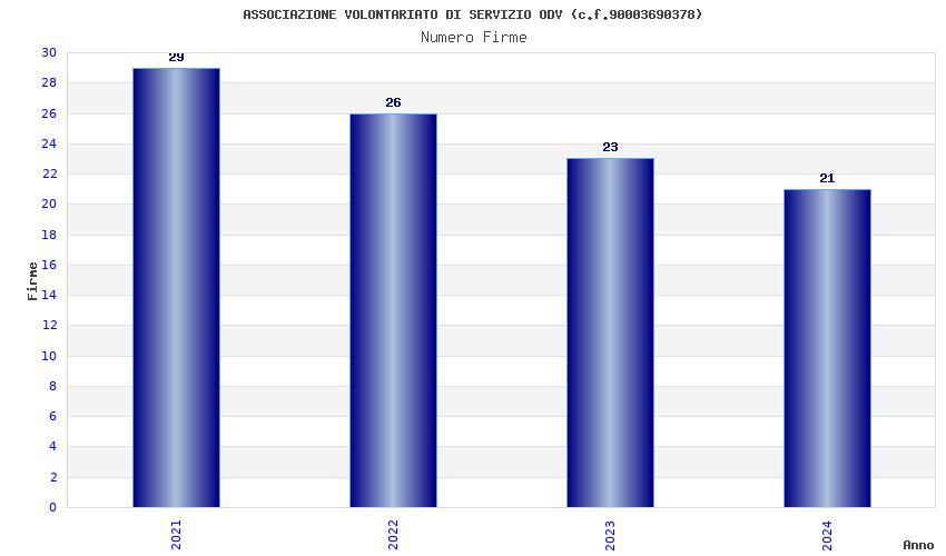 | Anno | Firme | Importi | Media | Naz. | Reg. | Prov. | Comu. |