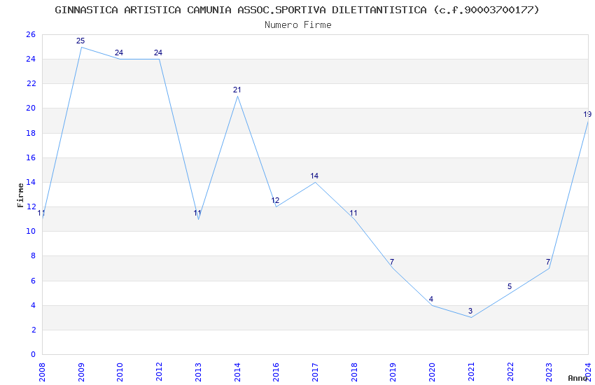 | 2024 | 19 | 625,24 | 32,91 | 46.910 | 9.094 | 1.177 | 14 |