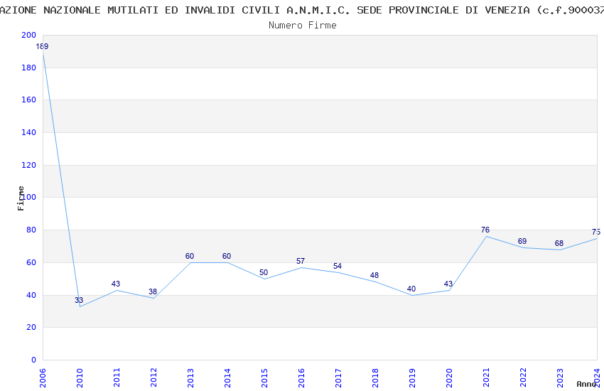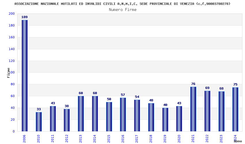 | Anno | Firme | Importi | Media | Naz. | Reg. | Prov. | Comu. |