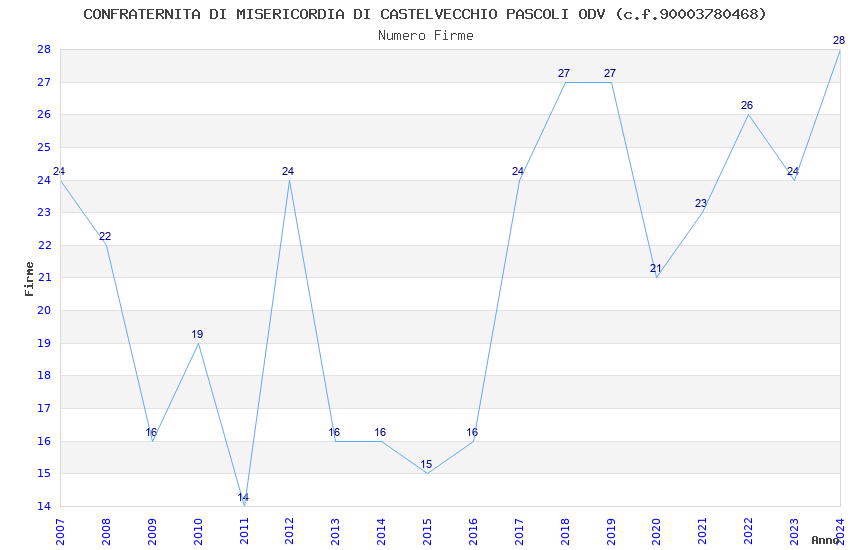 | 2024 | 28 | 1.307,00 | 46,68 | 32.193 | 1.975 | 204 | 6 |