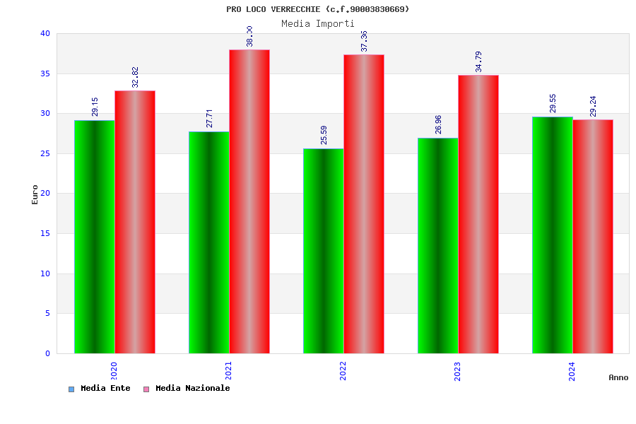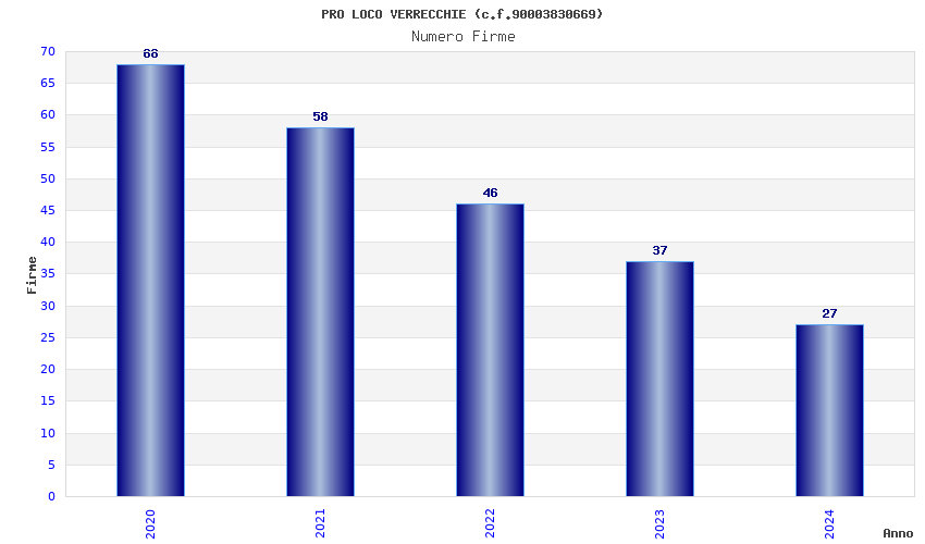| Anno | Firme | Importi | Media | Naz. | Reg. | Prov. | Comu. |