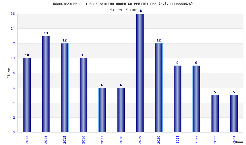 | Anno | Firme | Importi | Media | Naz. | Reg. | Prov. | Comu. |