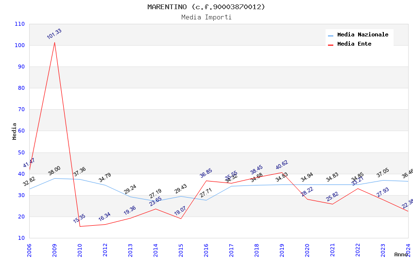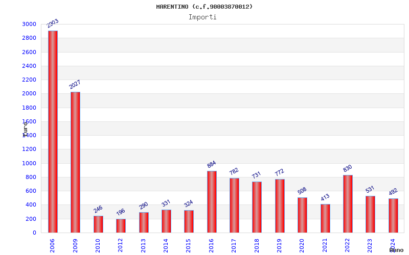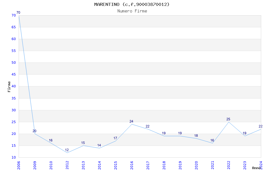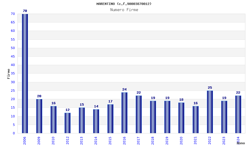 | Anno | Firme | Importi | Media | Naz. | Reg. | Prov. | Comu. |