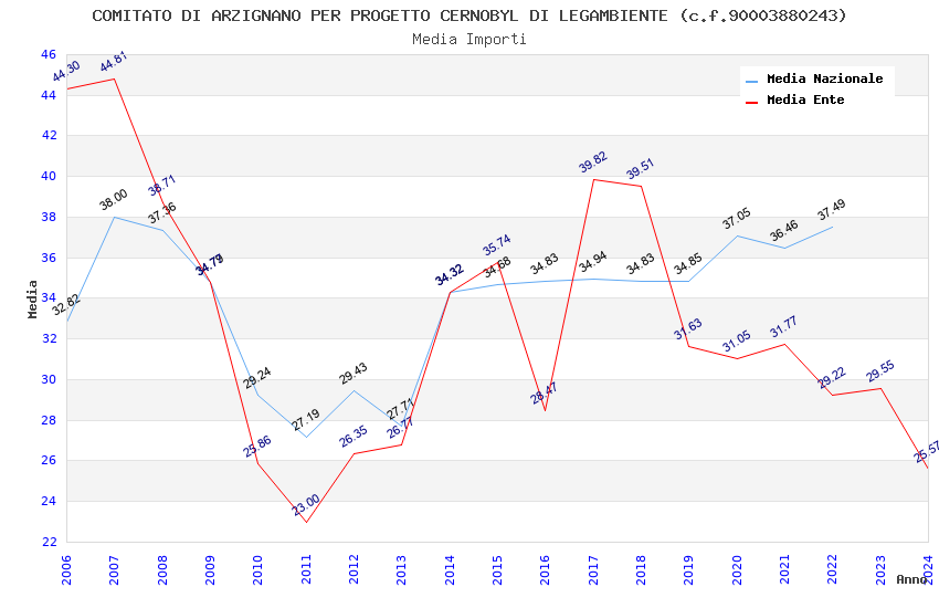 | Anno | Firme | Importi | Media | Naz. | Reg. | Prov. | Comu. |