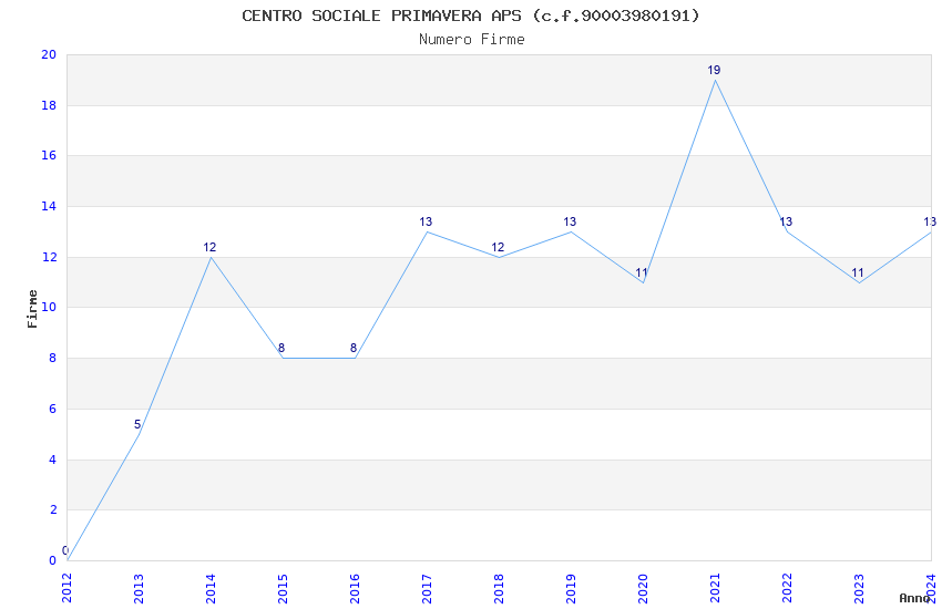 | 2019 | 13 | 303,72 | 23,36 | 51.591 | 10.400 | 509 | 19 |