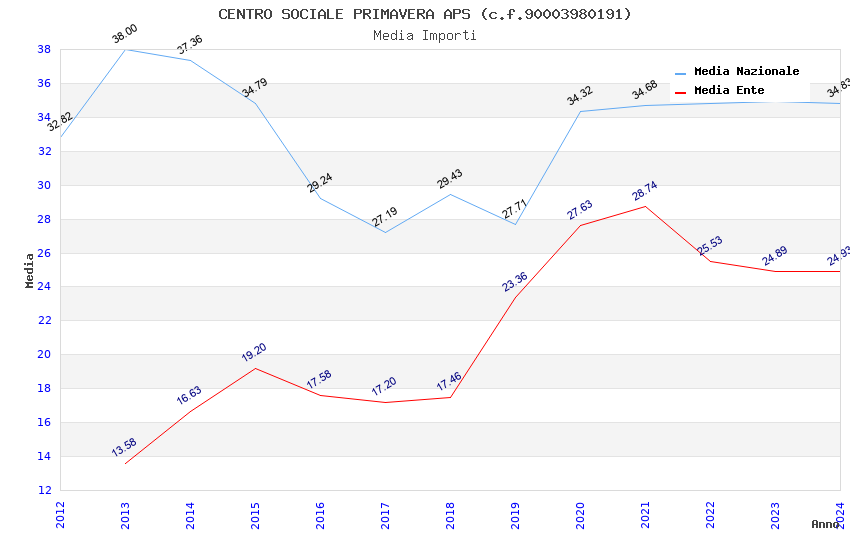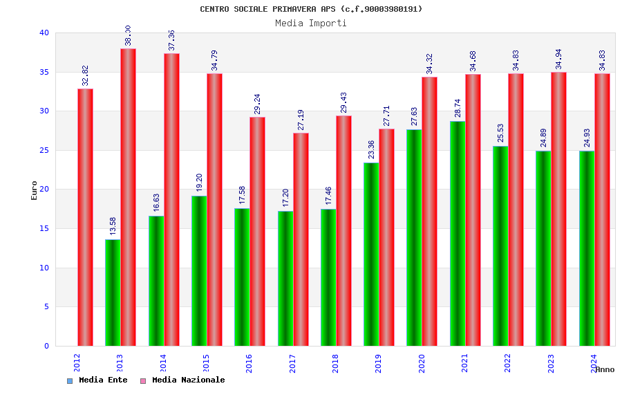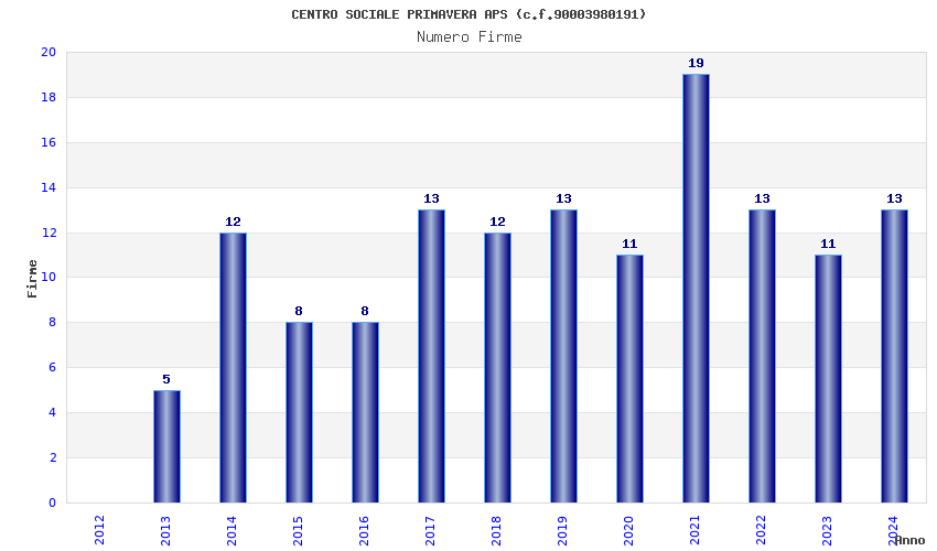 | Anno | Firme | Importi | Media | Naz. | Reg. | Prov. | Comu. |