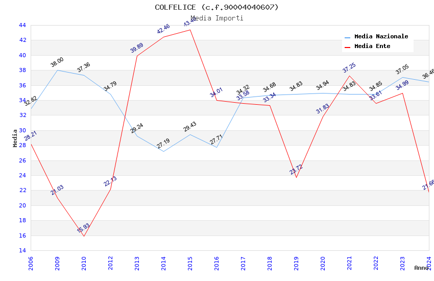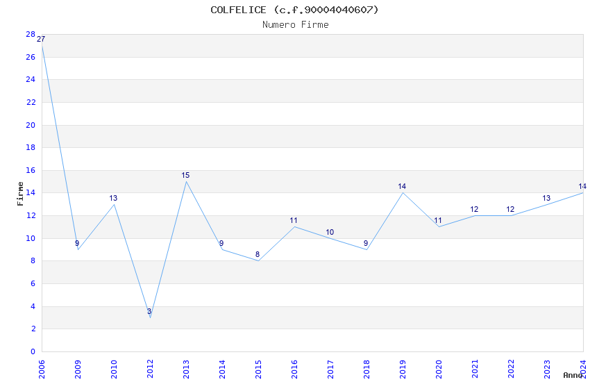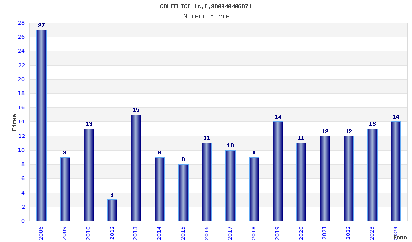 | Anno | Firme | Importi | Media | Naz. | Reg. | Prov. | Comu. |